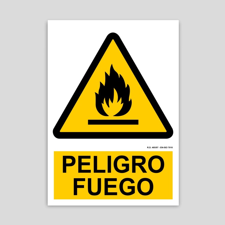 Cartell de Perill foc, fabricat en diferents materials, mides i idiomes