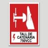 Cartell de Tall de Catenària 750VCC, disponible en PVC, en adhesiu, en diverses grandàries.